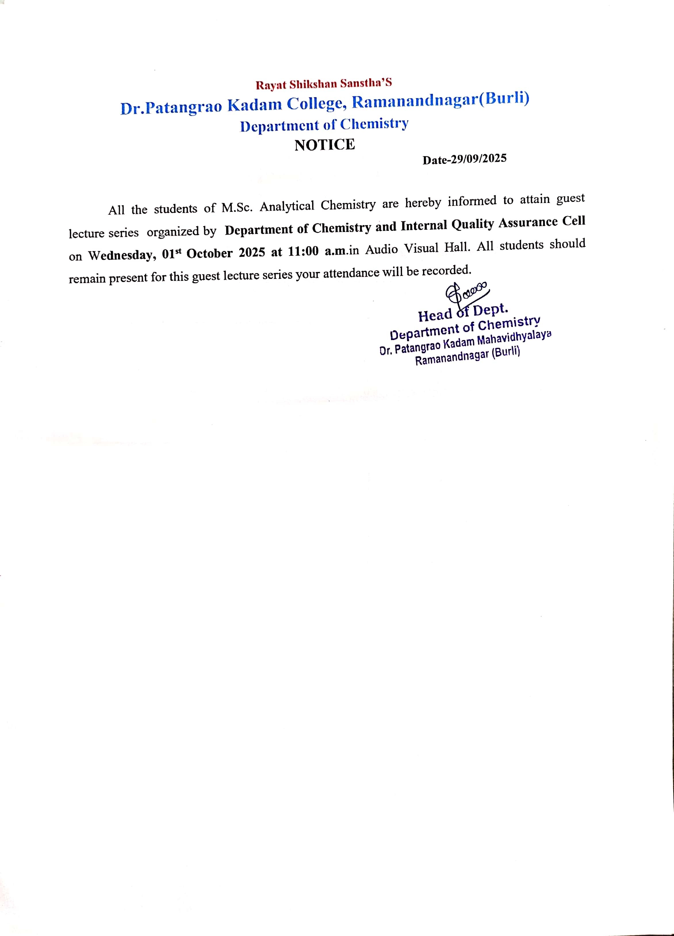 Dr. Patangrao Kadam Mahavidyalaya Ramanandnagar (Burli)