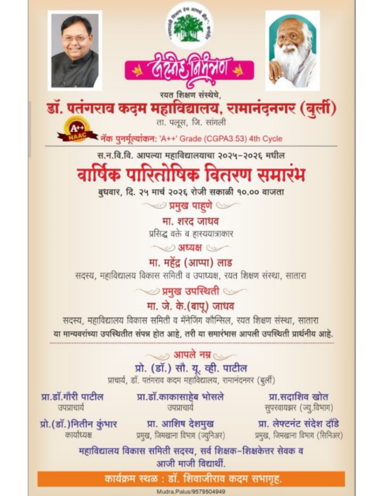 Affiliated to Shivaji University, Kolhapur | NAAC reaccredited A++ grade ( with 3.53 CGPA) in 4th cycle