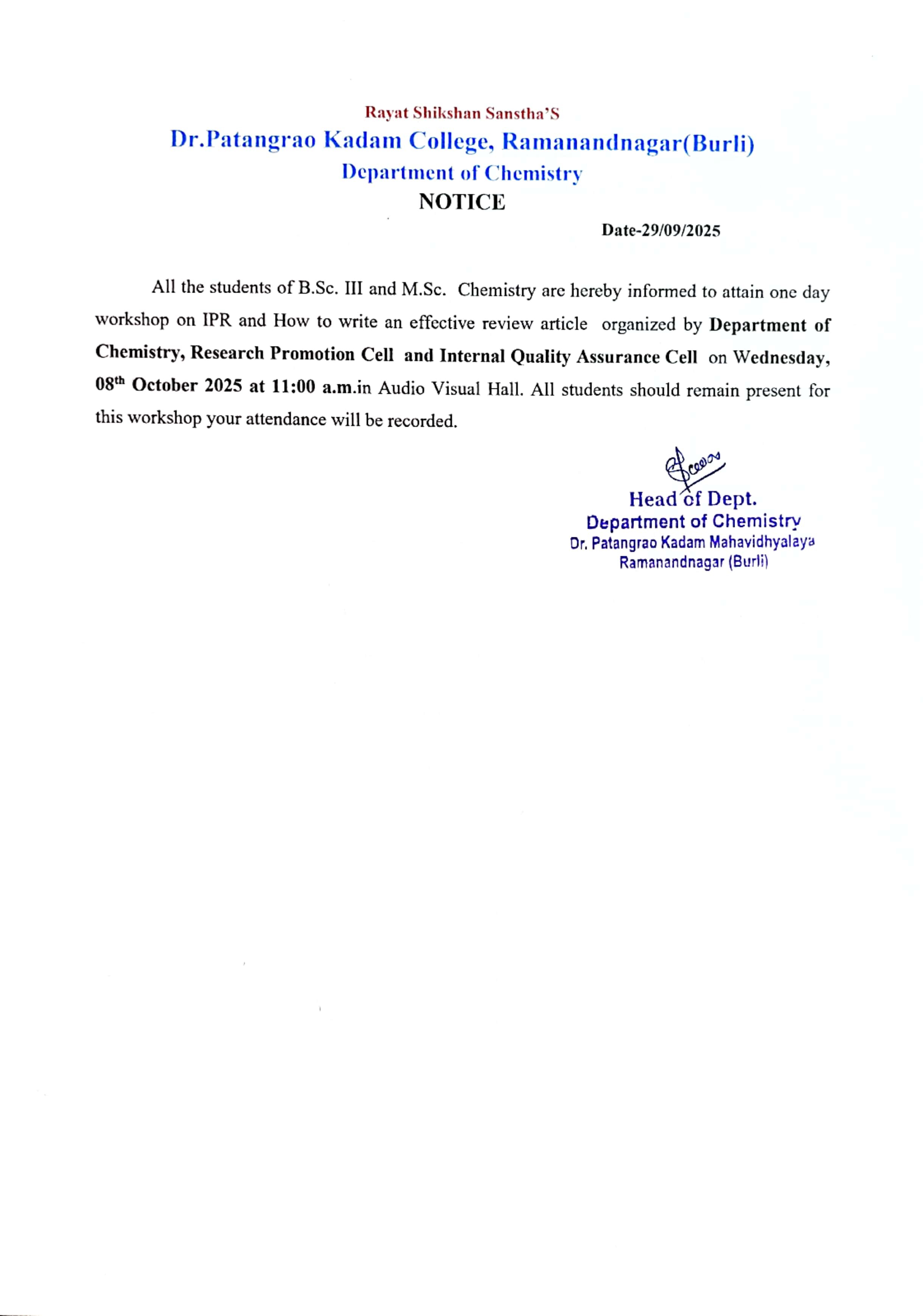 Dr. Patangrao Kadam Mahavidyalaya Ramanandnagar (Burli)