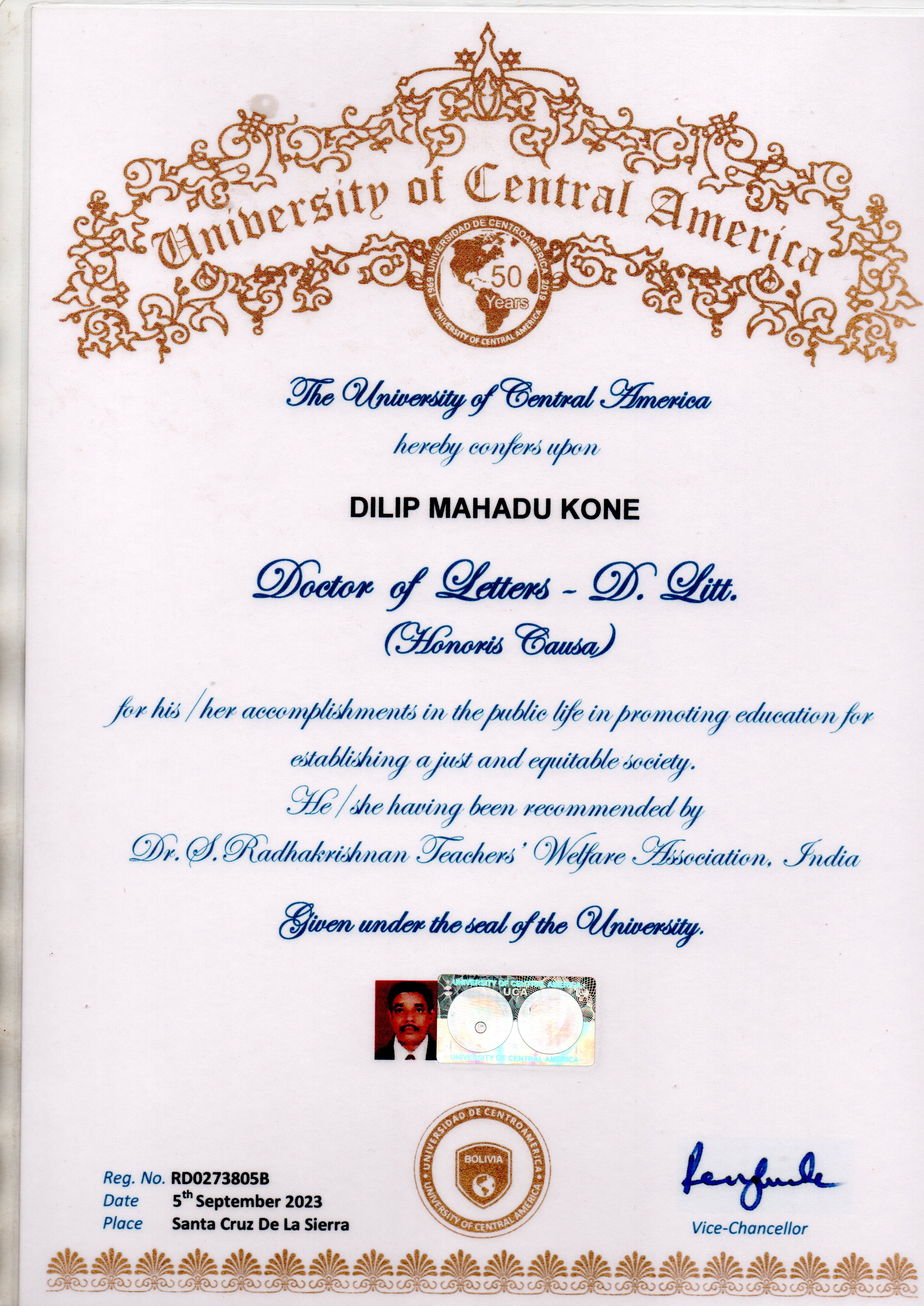 | 3 | Dr.Dilip Mahadu Kone | 05-09-2023 | International | D.Litt. | View |